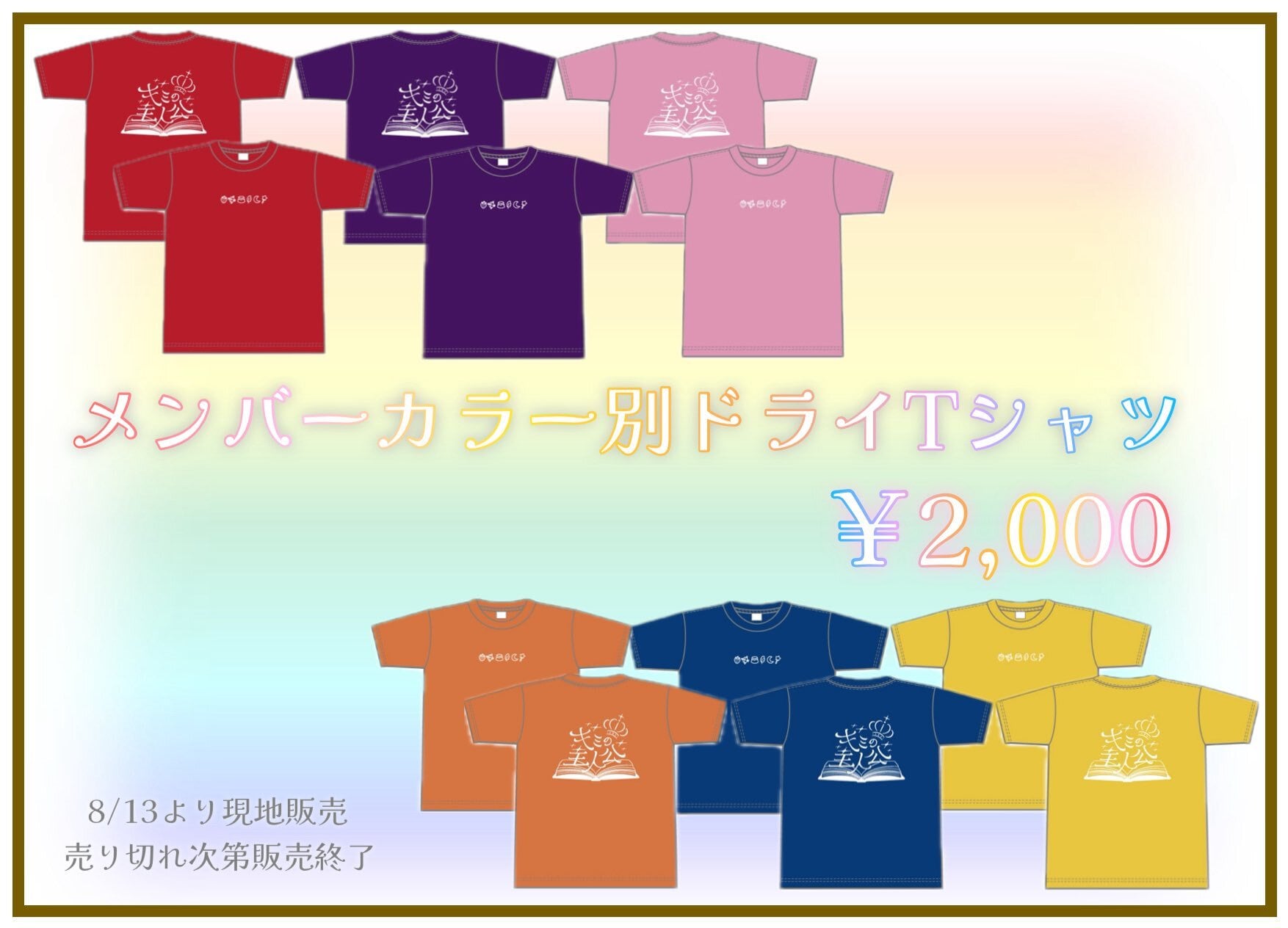 メンバーカラードライTシャツ 在庫に限りがございます。 ¥2,000- サイズフリー(XL相当)